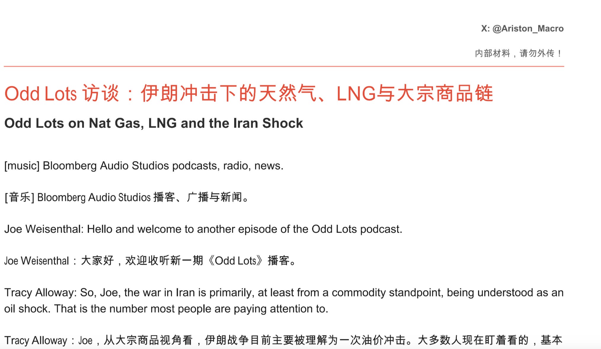 Bob Brackett:伊朗冲击下的天然气、LNG与大宗商品链